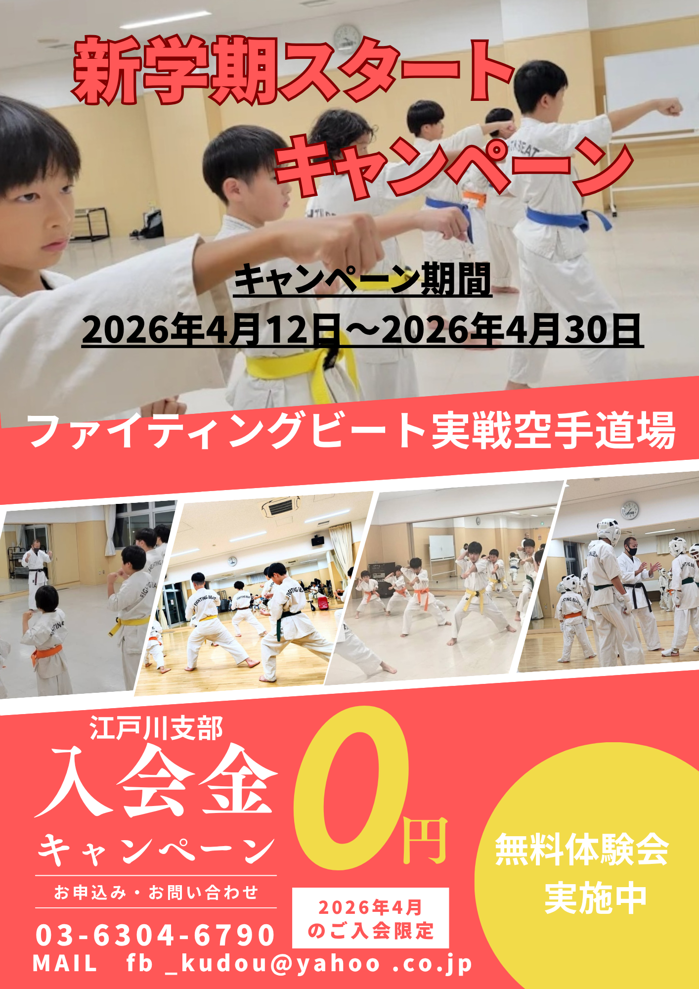 新着情報 2026年4月7日 第7回実戦空手道選手権 忘れ物 2026年4月2日 江戸川支部 4月稽古スケジュール 更新 お知らせ 2026年 3月16日 ルネサンス富士見台 ファイティングビート60 4月スケジュール